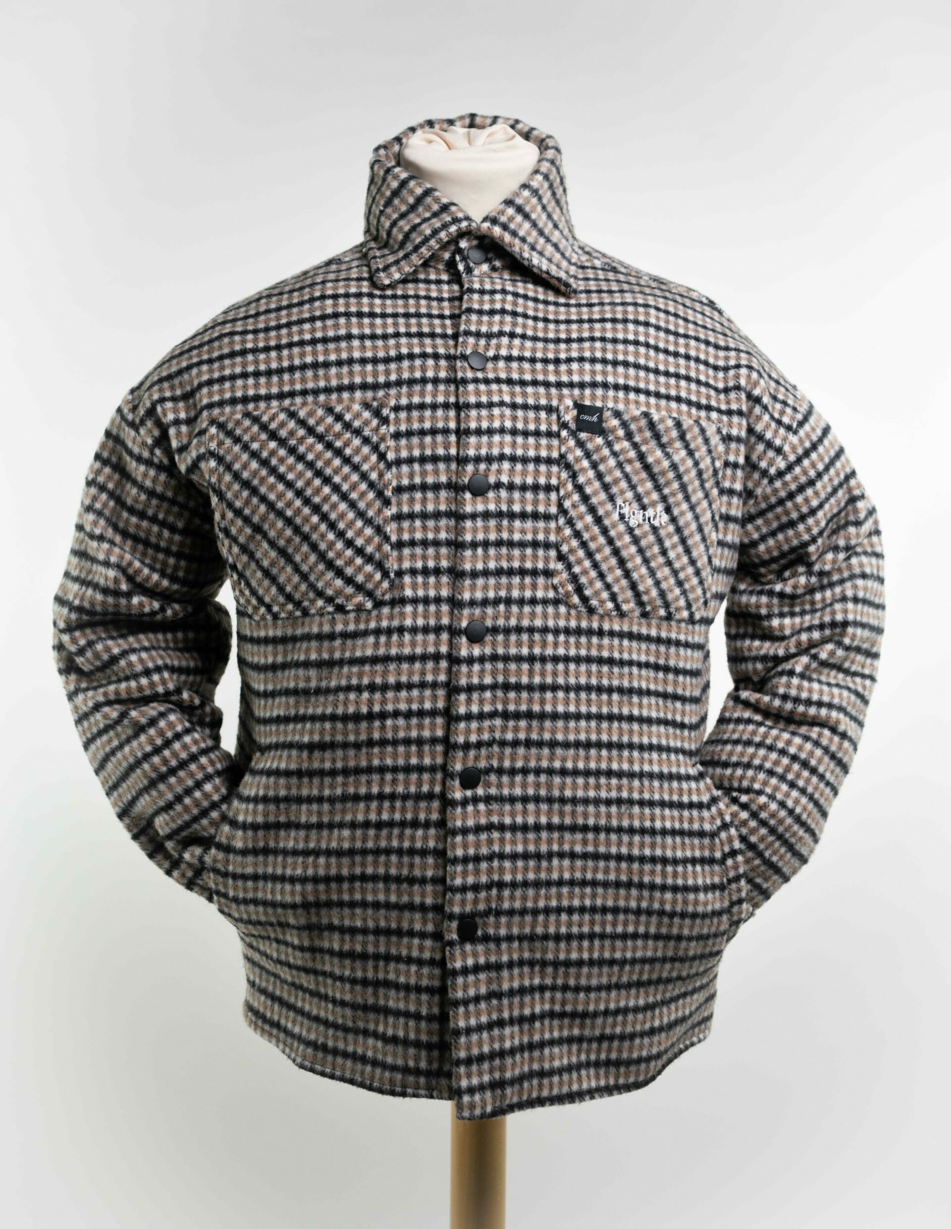 Die CMH x TLT Flanell Jacket in Braun wird aus feinstem gebĂ¼rsteten Pepita-Stoff gefertigt